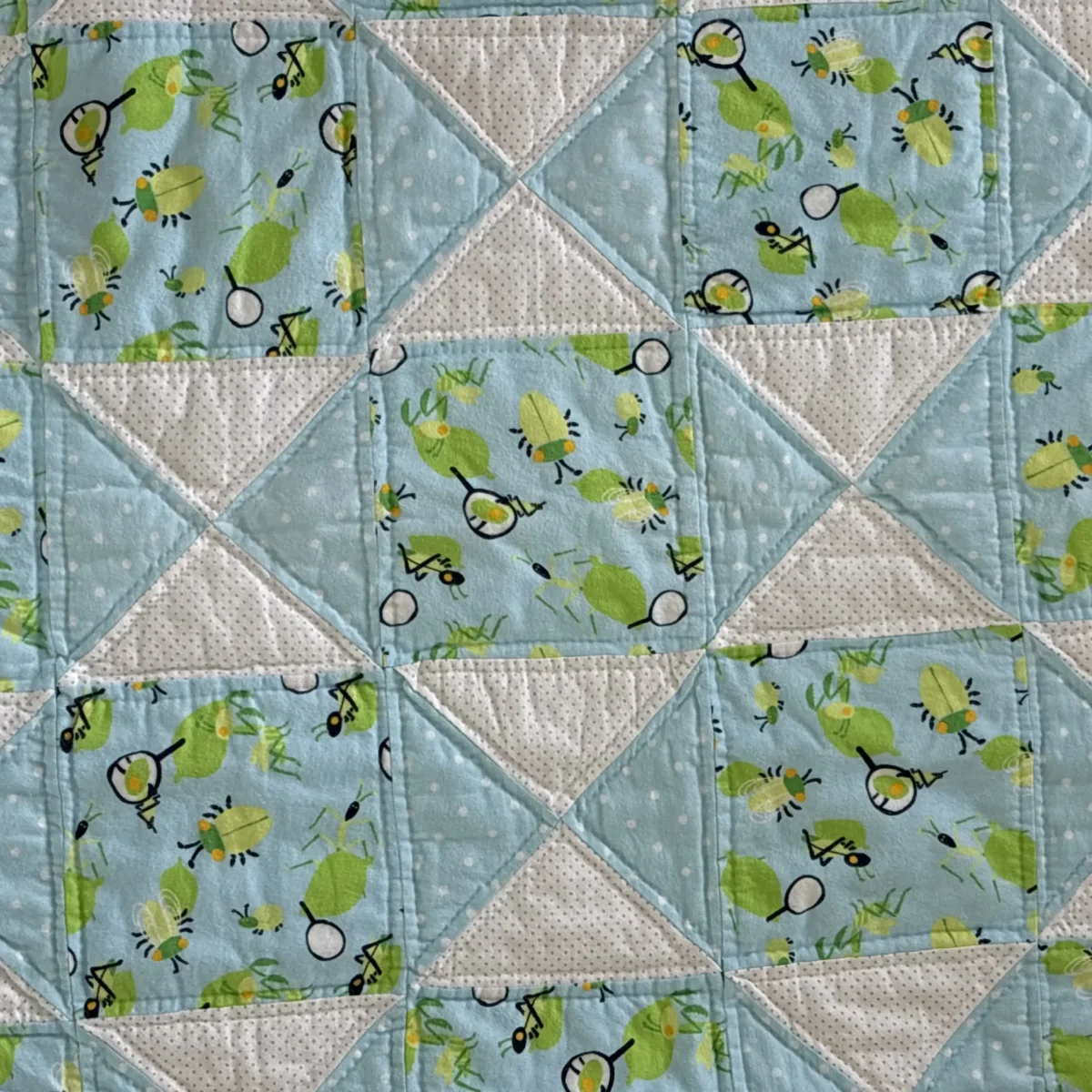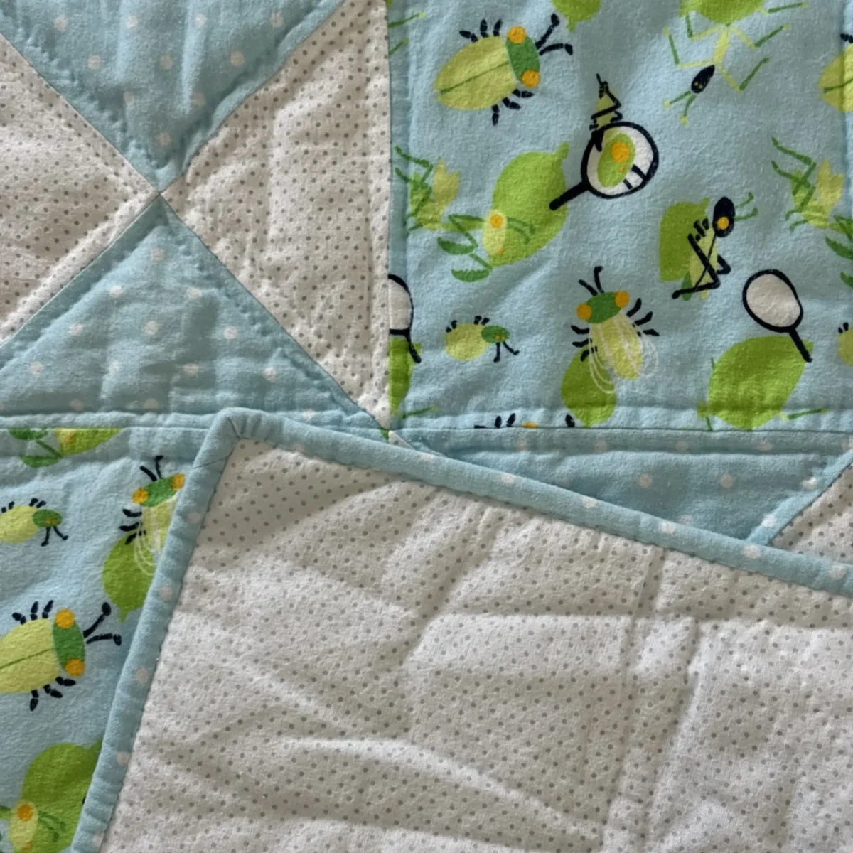 & Free ShippingBugs Life Baby Quilt features fun loving little bugs in shades of soft blue and green, with a touch of yellow, and white.
