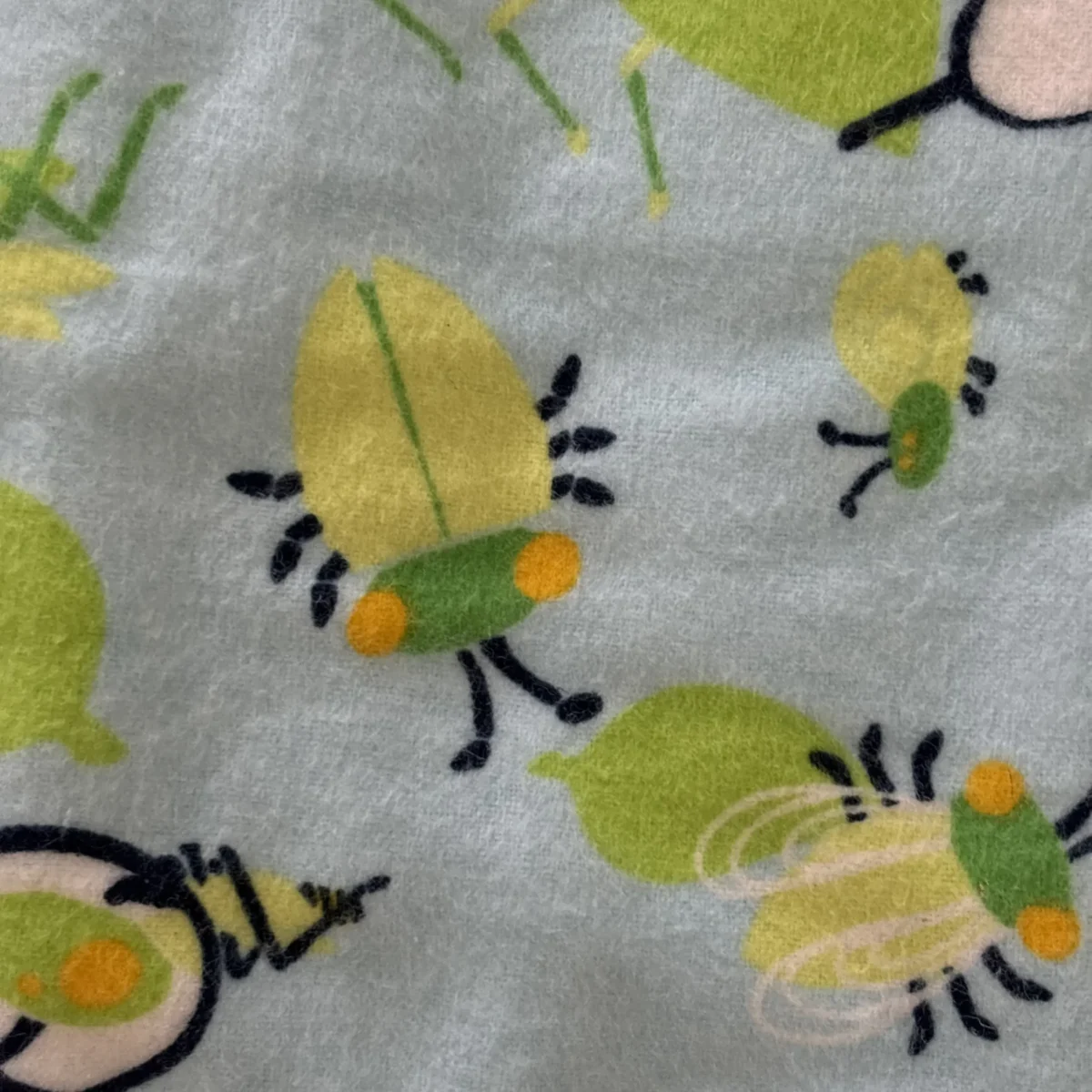 Delight your little one with the Bugs Life Baby Quilt, a cozy and cheerful addition to any nursery. This bugs quilt is adorable. It features fun-loving bugs in soft shades of blue, green, yellow, and white. This charming quilt brings the wonders of nature inside. Accented with playful polka dots, the design creates a lively yet soothing atmosphere, perfect for snuggles, naps, and playtime.