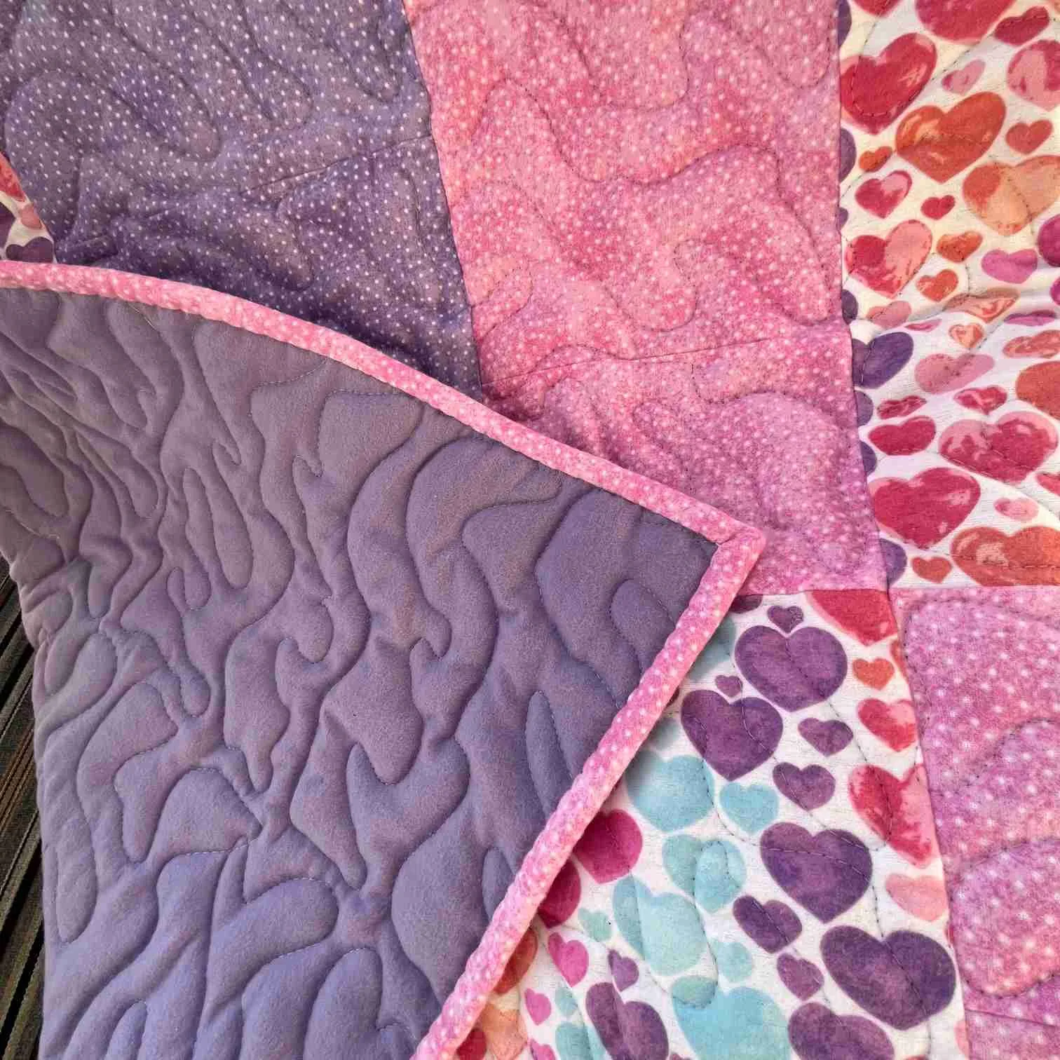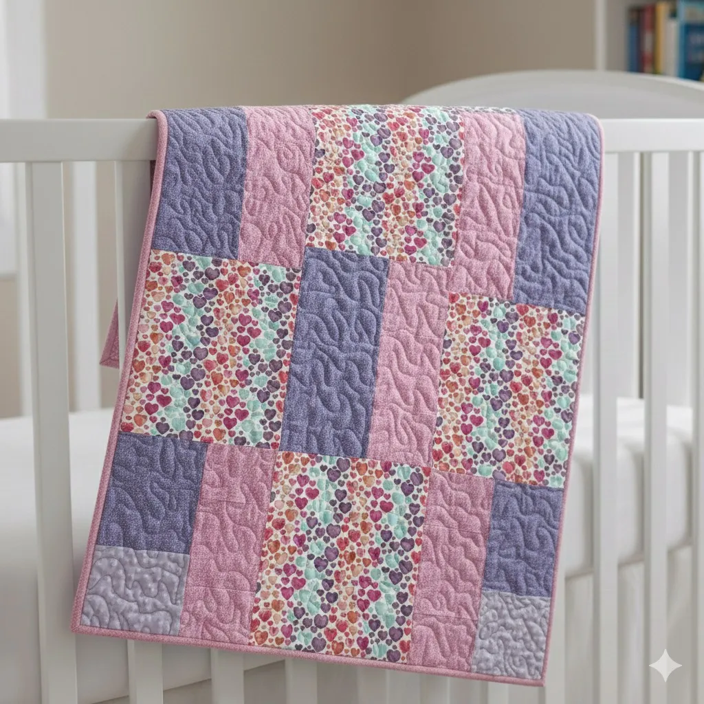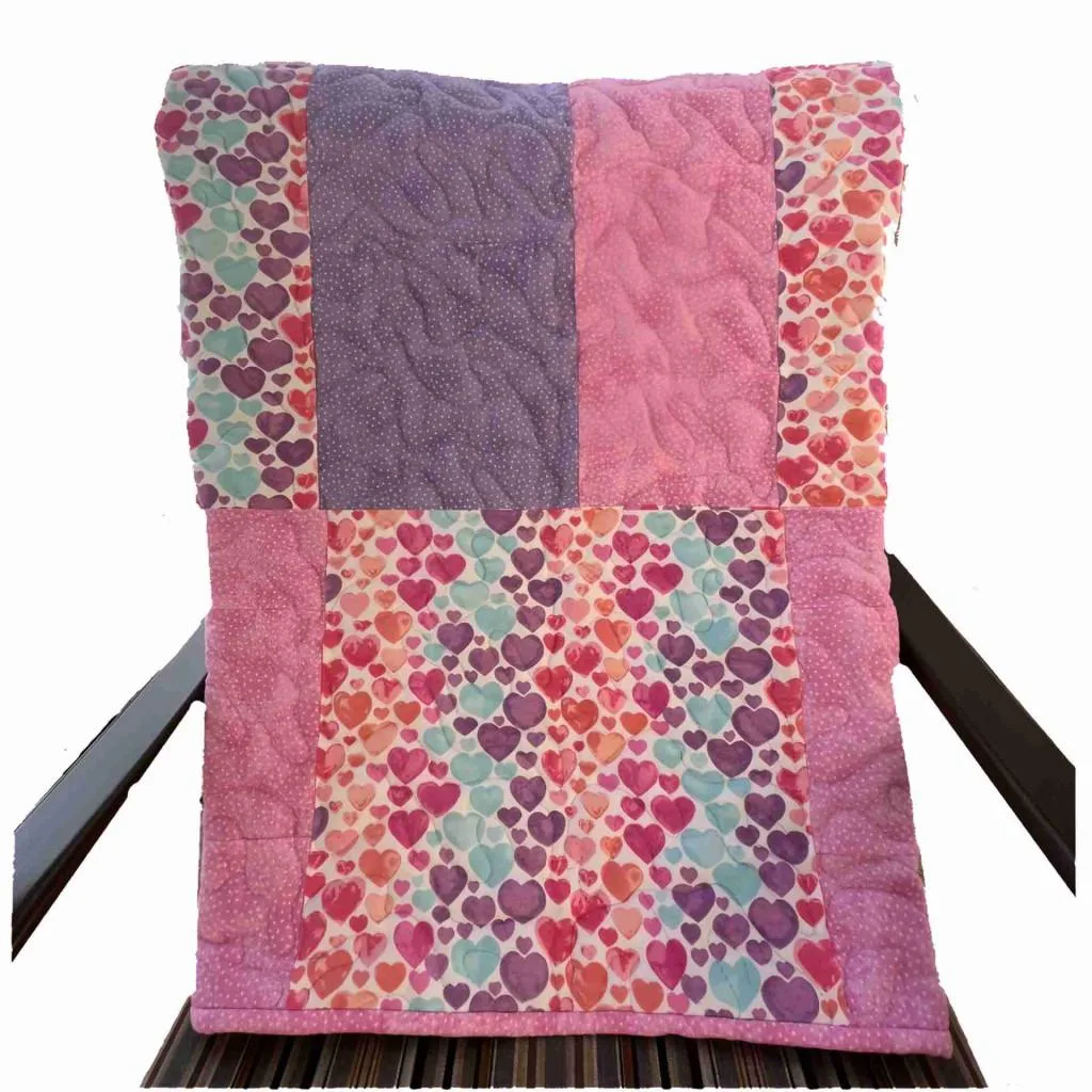 Pink and lavender have always been favorite nursery colors, and this quilt highlights these classic shades. The multicolor heart print symbolizes love, making this quilt a meaningful keepsake. As your little one grows, this quilt remains a cherished companion, perfect for a college dorm, first apartment, or even a future baby’s room.