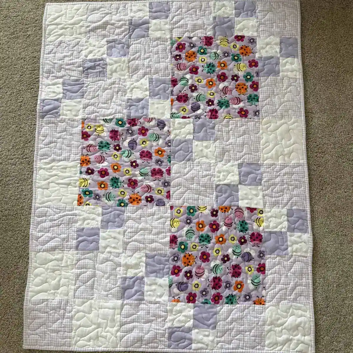 Lavender Flowers and Bugs Baby Quilt-Pastel Patchwork