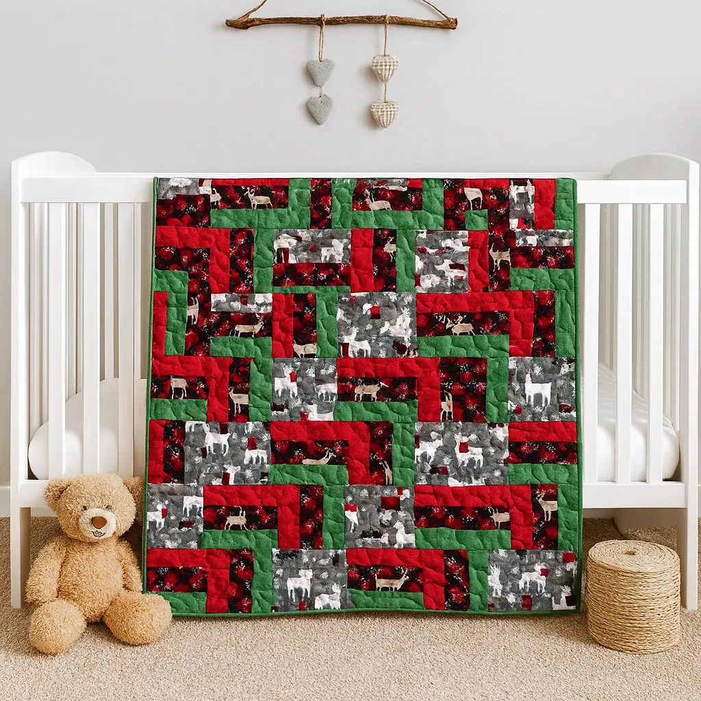 The backing is a solid holiday green, allowing you to flip the quilt over for a different look whenever you choose. This versatility makes it an ideal addition to any nursery or holiday décor.